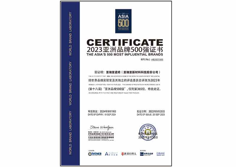 2024年-亚91桃色成人网站在线观看瓷砖中国500最具价值品牌证书