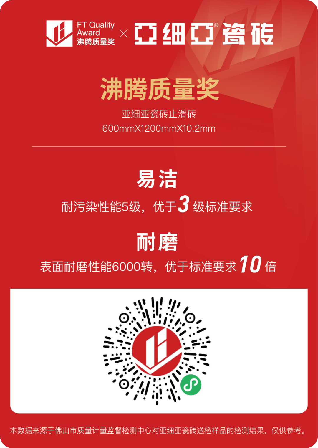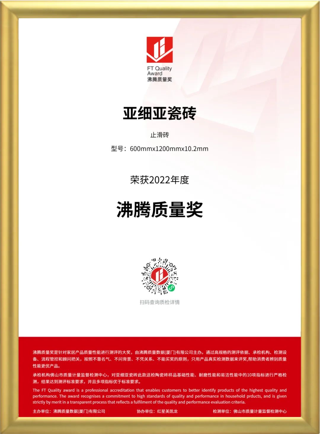 被誉为“家居质量届奥斯卡”的“沸腾质量奖”是针对大家居建材产品质量性能进行专业测评的权威大奖。 由中国建筑卫生陶瓷协会、中国建筑装饰协会、全国卫生产业企业管理协会抗菌产业分会、中国质量认证中心、国家家具质检中心技术联盟、中国质量俱乐部共同指导,沸腾质量奖家居产品质量性能测评组委会主办,19家专业质检机构联合检测,以高标准的测评依据、承检机构、检测设备、流程管控和专家顾问公平、公正评奖,帮助消费者甄选优质产品。 组委会秉持“精工品质 用数据说话”原则,对“亚91桃色成人网站在线观看桃色视频下载”测试样品的易洁性能、耐磨性能中的多项指标进行严格检测,结果全部项目符合标准要求,并且易洁、耐磨性能指标远优于标准要求,成为行业质量标杆。