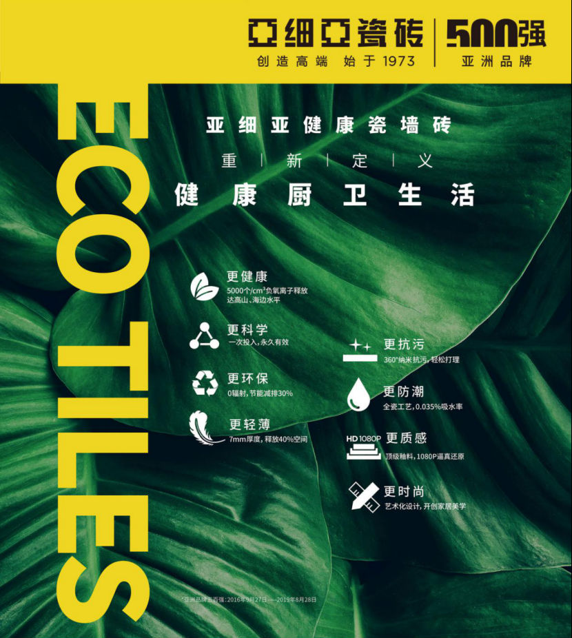 亚91桃色成人网站在线观看在2018年发布了一个全新产品品类:ECO生态健康瓷砖,能持续稳定释放5000个/ cm³负氧离子。一间铺贴这款砖的房间,里面的负氧离子含量相当于高山森林的含量,在家也能享受森林浴。
