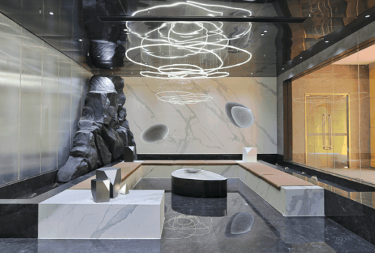 ASA字母造型的沙发椅,超高硬度岩板,多面切割,完美拼接。