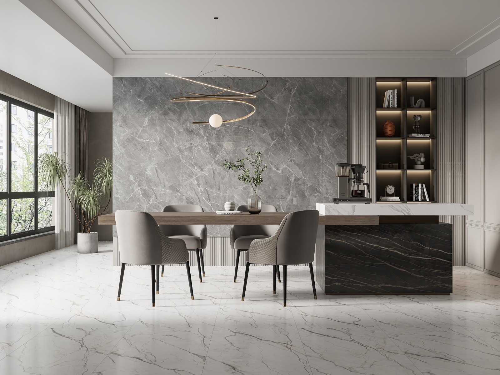 新鱼肚白的纹理更加写意奔放,给新中式、现代轻奢等风格增加了一些灵动不羁的气质。