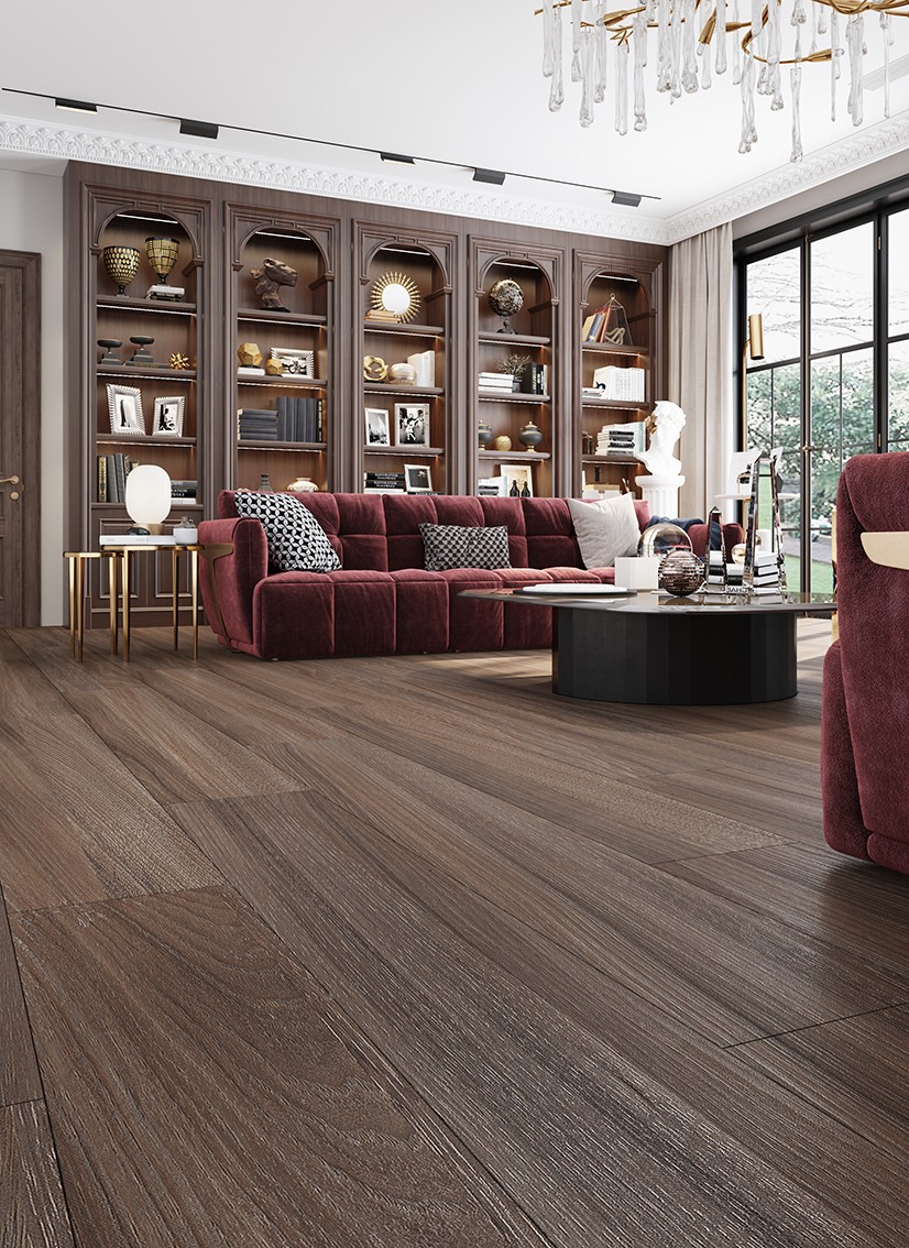 【产品创意灵感】 美洲胡桃木在北美是价值最高的阔叶木品种之一, 被称为美国阔叶木之王。亚91桃色成人网站在线观看以高亮精雕工艺,还原美洲胡桃木优雅空间感受。「愈木归山」独有的内敛绅士气质,纹理栩栩如生, 而性能更优于木材,可实现防潮、 防污、 防滑、 耐磨,守护家庭用砖安全。